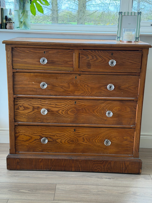 Victorian Ash Chest of Drawers with Original Glass Handles