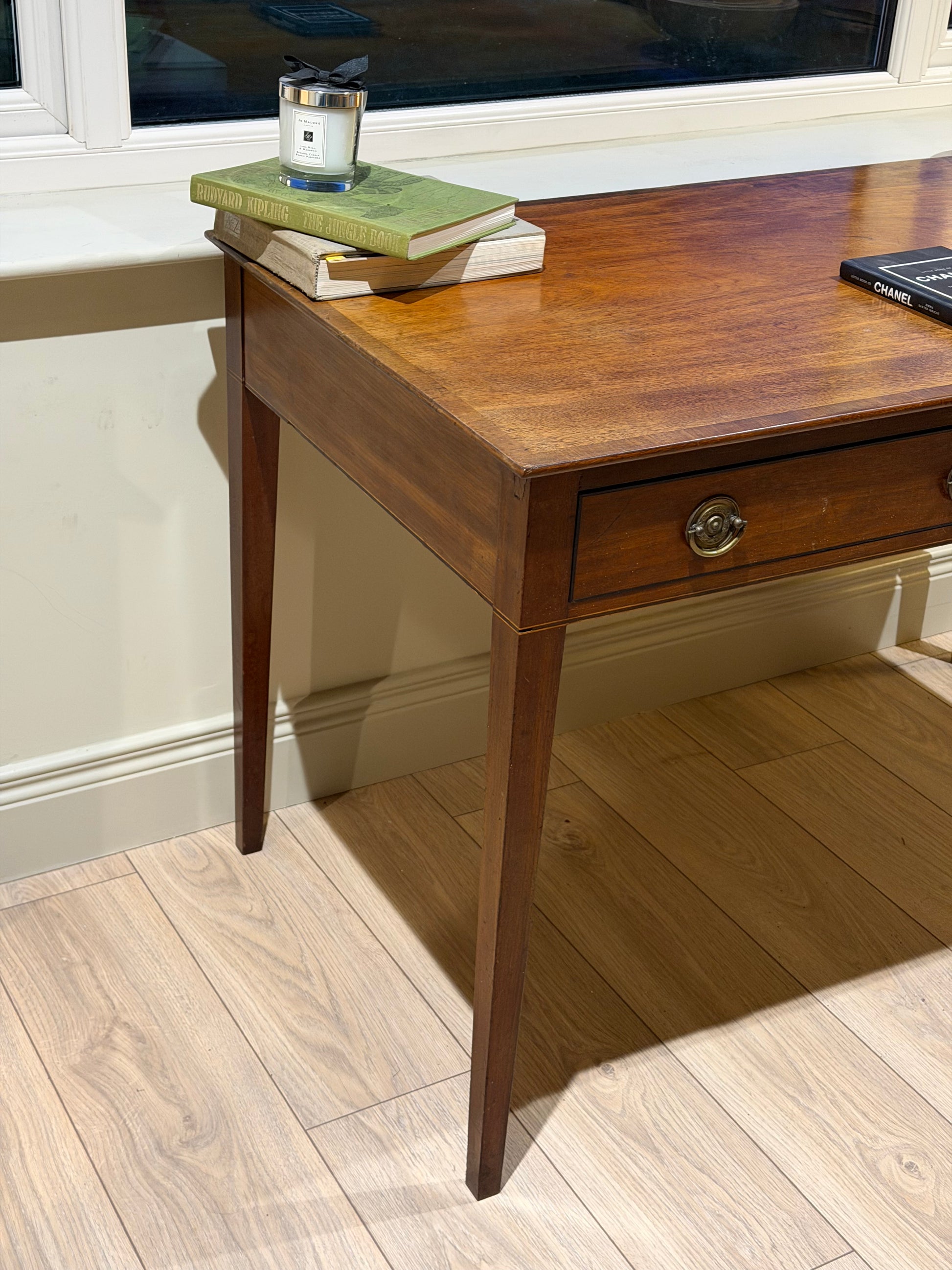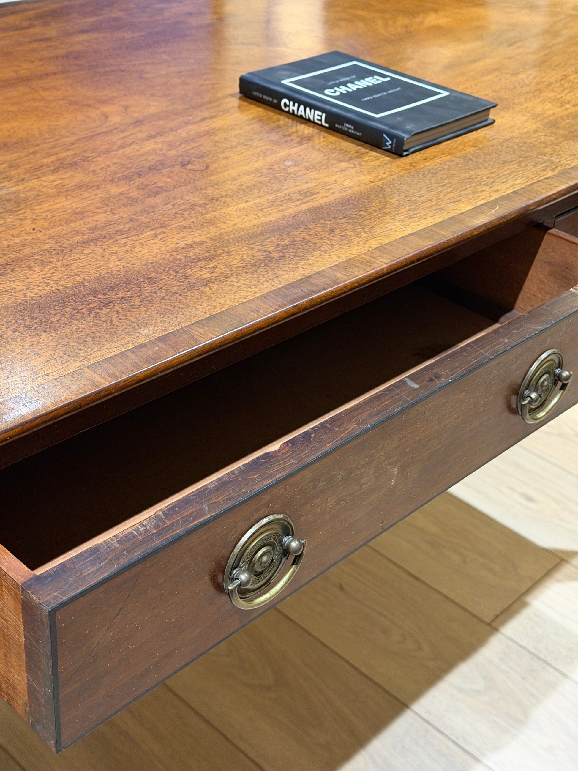 This writing desk has all the qualities you look for in an antique. Its age, how it’s patina over the years, the quality in the mahogany , the good original condition.